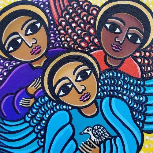 Artists of all levels are invited to explore Ethiopian Christian art and its guardian angel tradition. We will be guided to paint our own guardian angels, led by liturgical artist Laura James, whose work employs the ancient Ethiopian Christian way of icon making and helps Black people see themselves in their sacred texts.