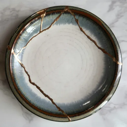 Kintsugi is a venerable Japanese art form of mending broken ceramics with gold. (Kin is gold and Tsugi is to mend/connect.)