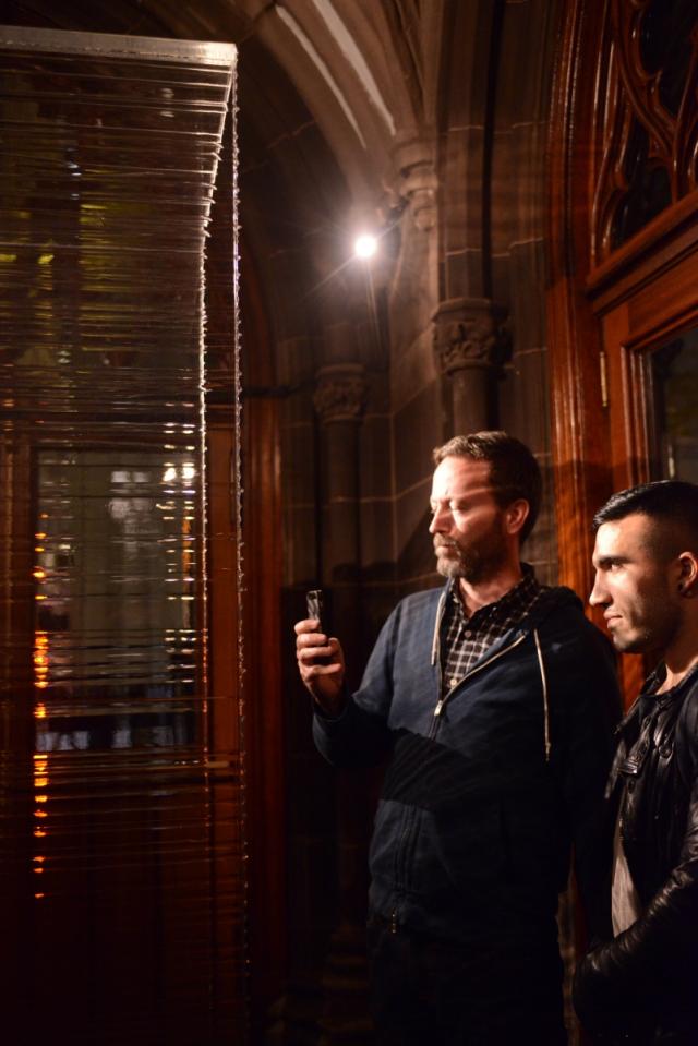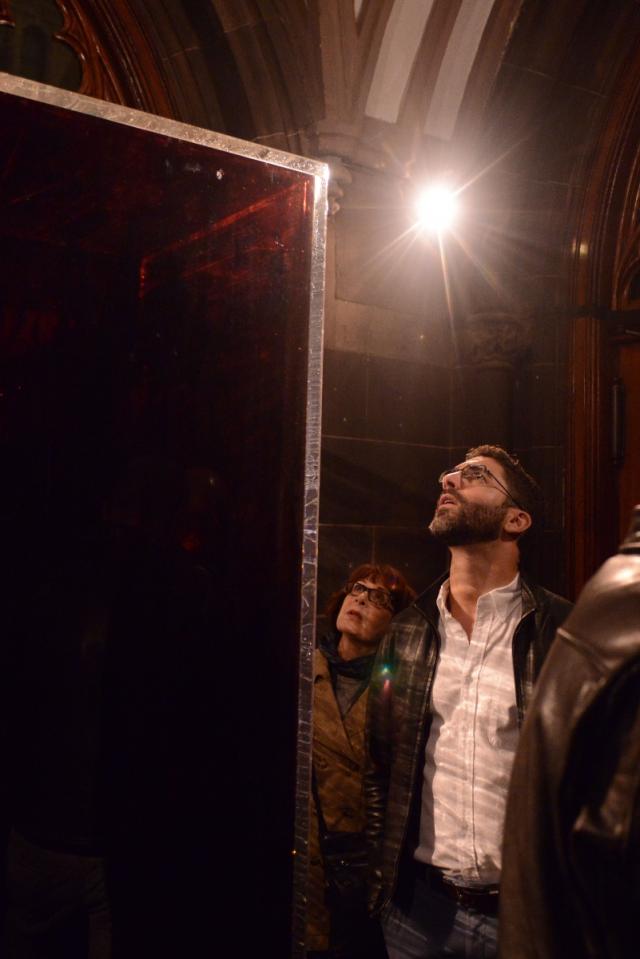 On Monday, November 2, 2015, an opening reception was held in Trinity Church for the New York City premiere of Blood Mirror: organized by Jordan Eagles, an exhibition featuring a seven-foot-tall, interactive, monolithic sculpture created in response to the U.S. Food and Drug Administration’s ban on blood donations from non-celibate gay and bisexual men.