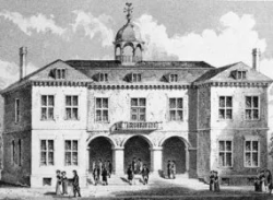 Lewis was born on March 21, 1713, in Llandaff, Wales, the son of a clergyman. He began a career as a merchant and moved to New York around 1737. At the time of Lewis's arrival, Trinity was still using its original church (pictured below), the first of the parish's three church buildings at Broadway and Wall Street.