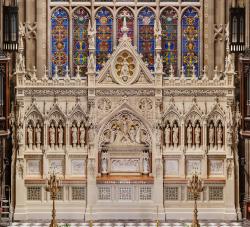 Other gifts from the Astor family to Trinity Church include the large marble-carved reredos (an ornamental screen behind the altar), which was given to the church by John Jacob Astor III in 1876-77 in memory of his father, William B. Astor. And, the bronze doors at the north, south, and east-facing entries to Trinity Church were a gift from William Waldorf Astor in 1891.