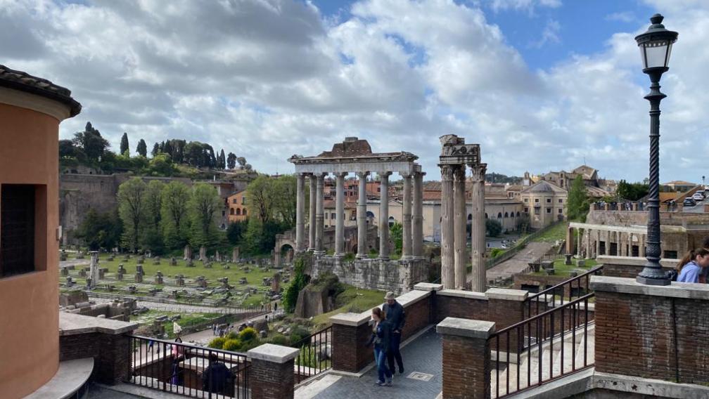Trinity Pilgrims take in Rome, including the Pantheon, the Forum, Circus Maximus, the Arch of Titus, the Baths of Caracalla, the Arch of Constantine, Trevi Fountain, and the Spanish Steps.