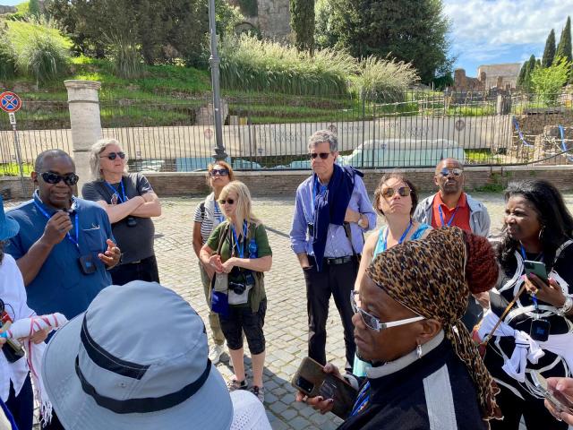 Standing by the imposing Arch of Titus, Michael Battle reminds Trinity pilgrims that Paul was up against the Empire, in the forms of both power and a citizenry socialized by violence. But Paul’s spirituality introduced a new understanding of citizenry—one in which power is found in the actions of love in solidarity with the poor—by being “in Christ.”