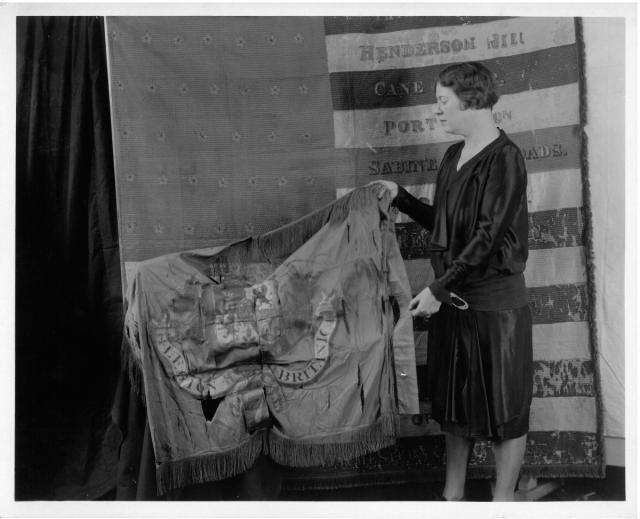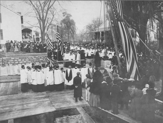In the 1920s, flags displayed at St. Cornelius were restored. We loved this photo and are researching the flags and the restoration process. We'll report back soon!