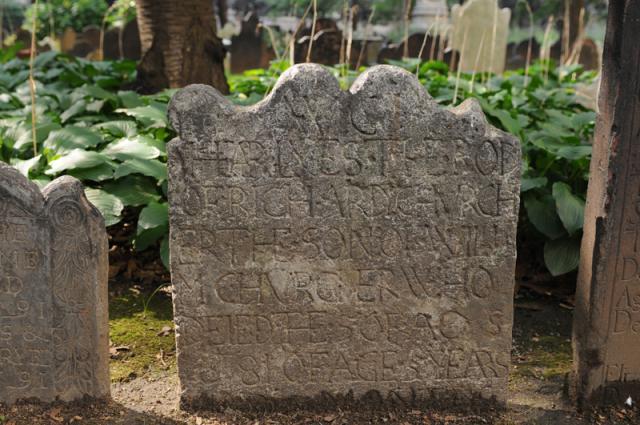 Trinity’s north churchyard was used as a public burial ground as early as the 1660s, when it lay outside the city’s walls. The oldest legible gravestone in Trinity Church’s churchyard belongs to 5-year-old Richard Churcher, who died in 1681 — 16 years before Trinity officially became a congregation.