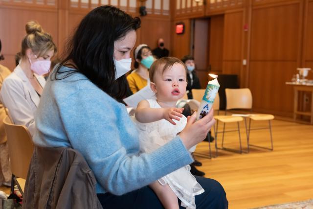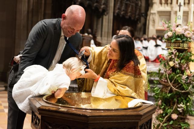 Poppy Rohde and Andrew Sidney Thomas Byers received the sacrament of Holy Baptism on Sunday, May 1 at the 9:15am Family Service, thus becoming the first two persons ever baptized in Trinity’s new Parish Hall.
