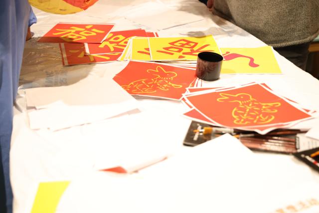 Most of the lanterns were made in red and yellow, symbolic colors for the Chinese New Year celebration. People could decorate the lanterns with paper-cut stickers representing the zodiac of the coming new year, the Year of the Rabbit. Some lanterns had Chinese and Yiddish characters, reflecting the history of the Lower East Side.